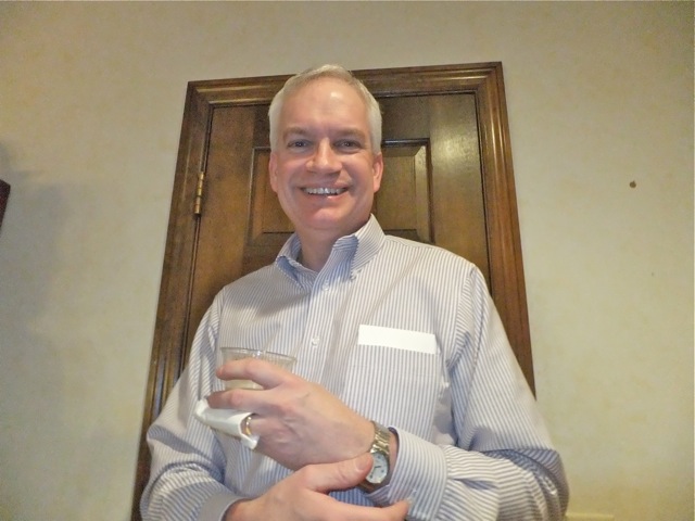 Here's Joe at The Slip where we had dinner outside. The small building used to be a ferry terminal. There are only a few tables inside the restaurant. The lake is not far away.